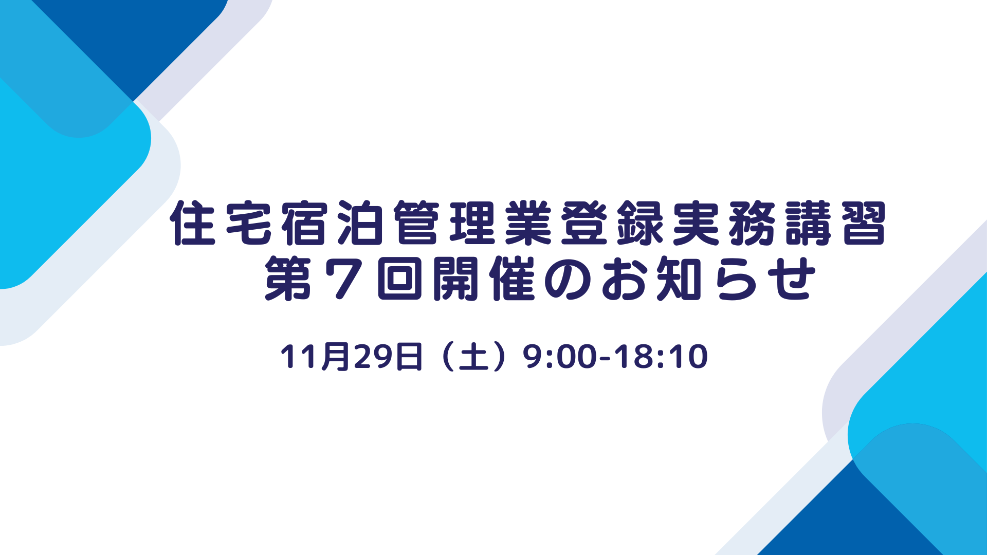 第7回【11/29(土)開催】住宅宿泊管理業登録実務講習|Zoom開催・国土交通省認定|18:10終了(民泊学院)